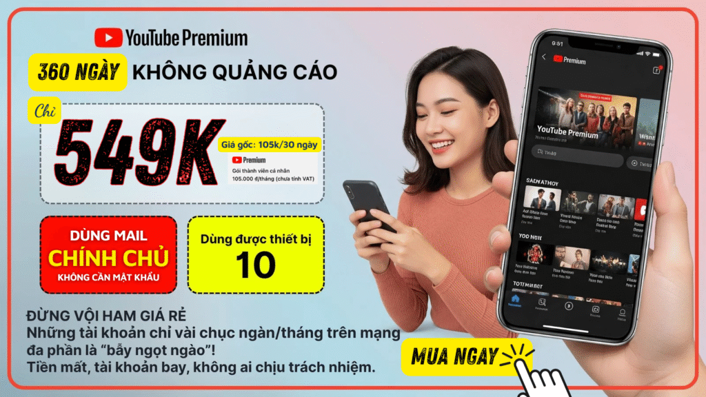 🎉 YouTube Premium | Gói 12 tháng 549K!